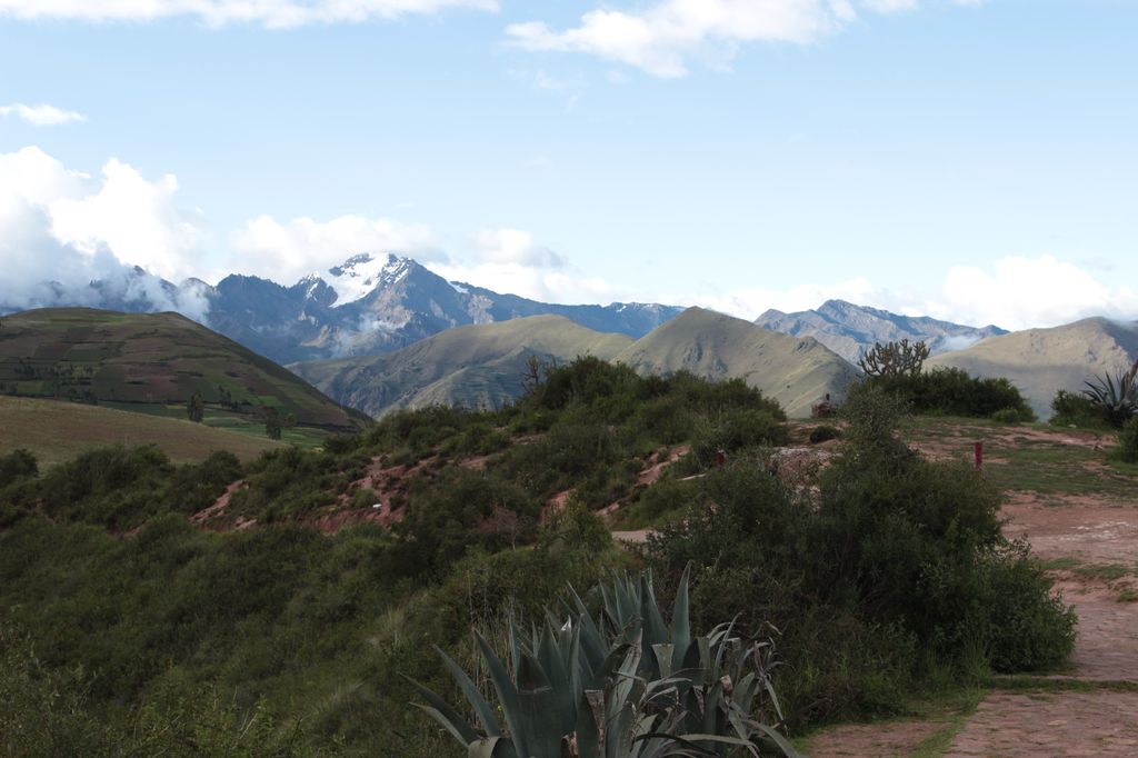 Ollantaytambo vu des ruines, sur fond de manifestation