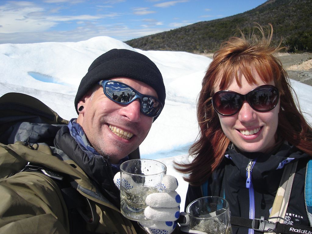 en bateau sur le lago Argentino: une petite bière pour se rafraîchir!