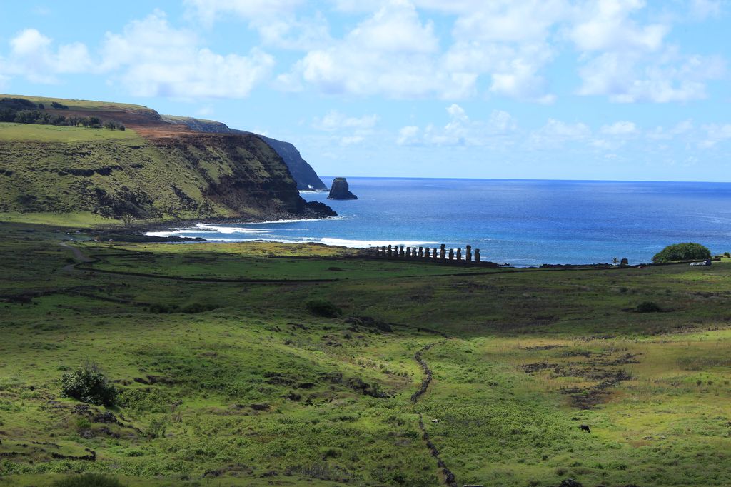 site de Ahu A Kivi, les seuls Maoïs de l’île tournés vers la mer