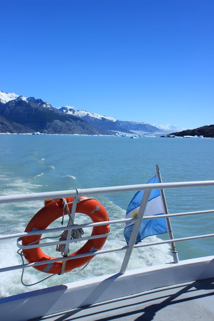 en bateau sur le lago Argentino: une petite bière pour se rafraîchir!