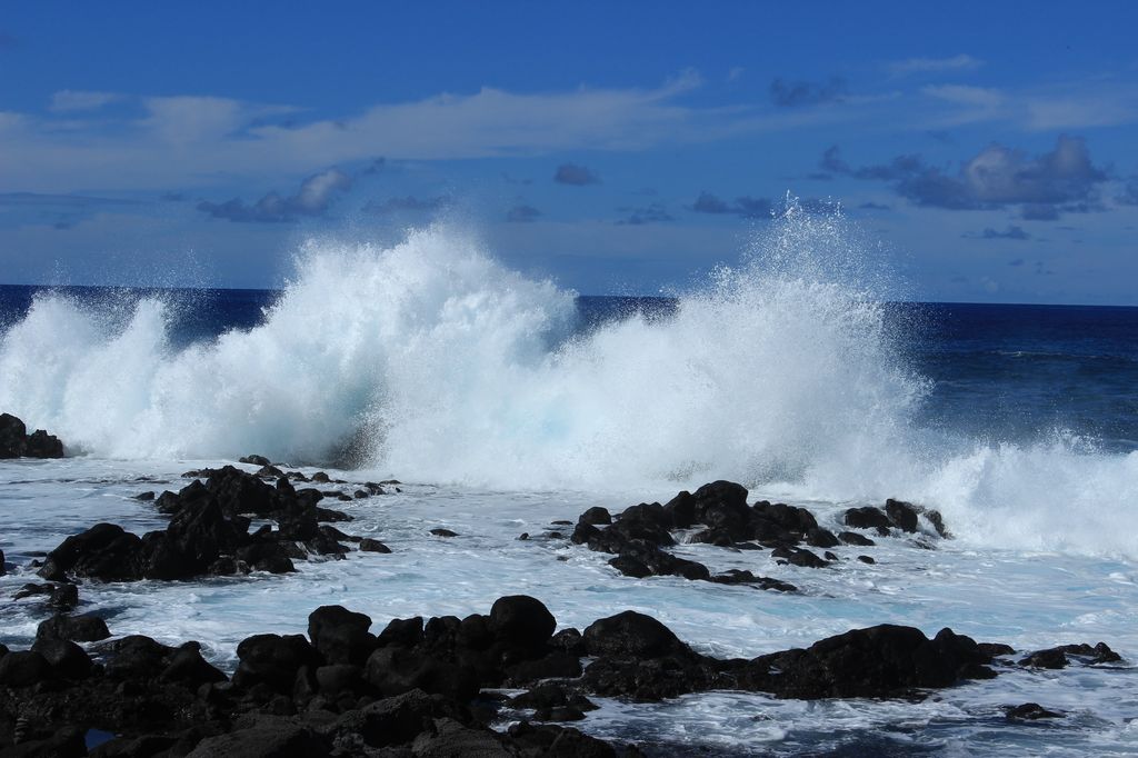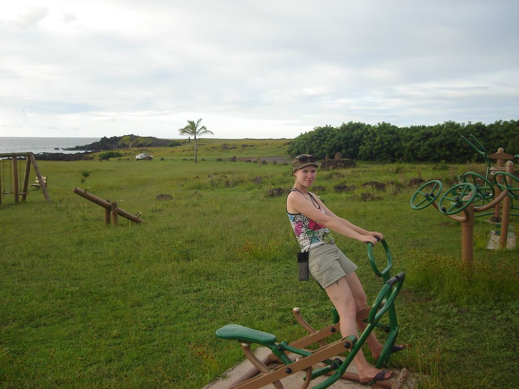 C’est juste saisissant, ces énormes bustes de pierre tous alignés sur leur plateformes. Il est difficile de rendre justice à la majesté qui s’en dégage. On est resté scotchés longtemps à les admirer avant de finir par faire un peu de sport à coté des Moaïs, face à la mer: