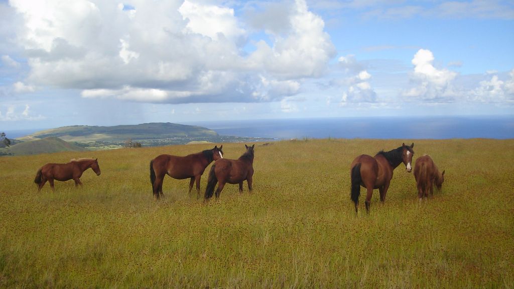 Aujourd’hui une chouette balade à cheval pour monter au somment du volcan Terevaka, où nous avons pris une petite pluie sur la tête, mais il faisait tellement chaud, que c’en était agréable.