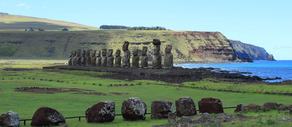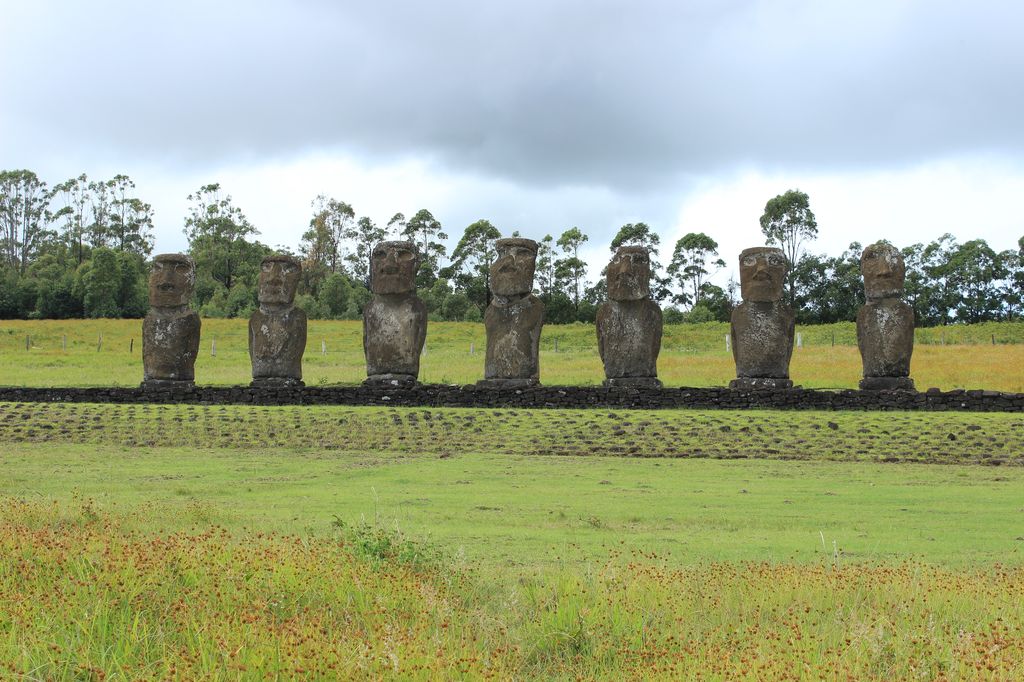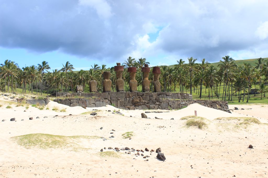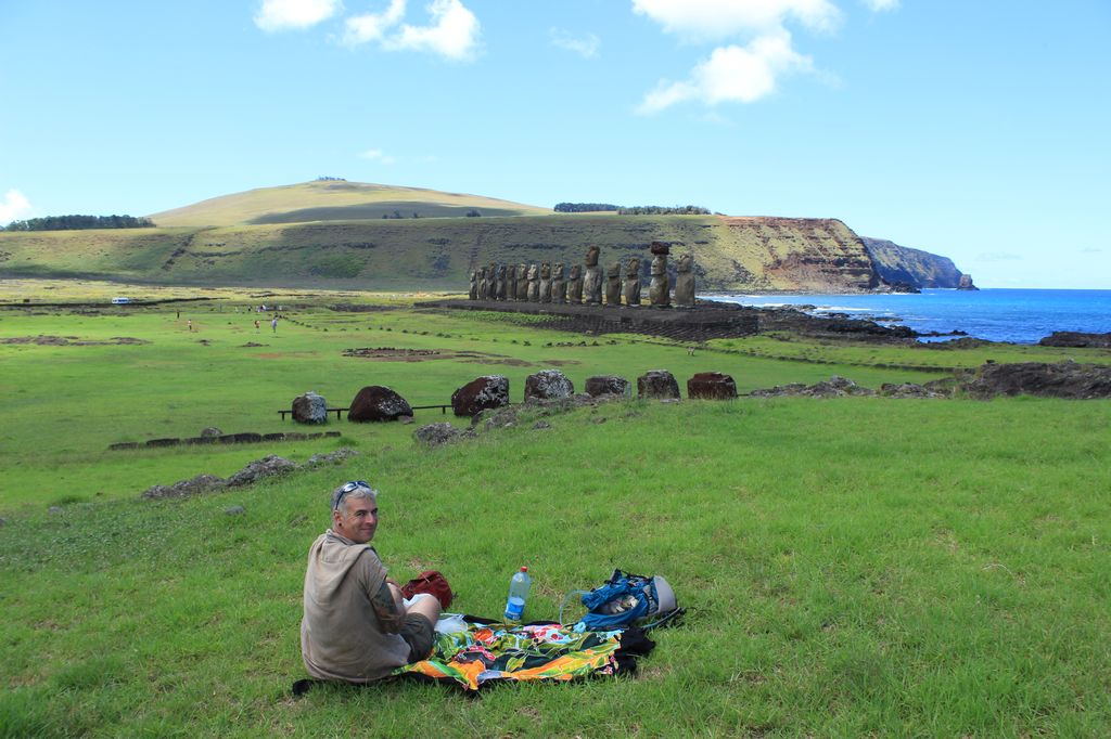 On pic-niquera face au site d’Ahu Tongariki, le seul site possédant 15 Moaïs en bon état, restauré grâce au financement du japon après un tsunami.