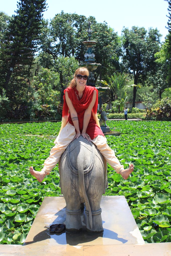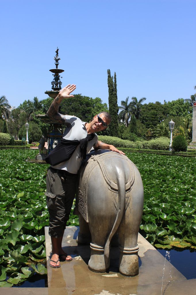 A ce propos, Nous seront stupéfaits de voir les jets d’eau des fontaines devenir plus puissants lorsque l’on frappe dans ses mains, avant de rigoler devant tant d’ingéniosité qui se résume a placer un préposé aux robinets, qui lorsque les touristes tapent dans leur mains, ouvre littéralement les vannes pour augmenter le débit des fontaines. Je m’y suis laissé prendre. Mais une fois le stratagème découvert, le préposé s’abstiendra de le faire lorsque nous le regardons. Nous flânerons avec un certain plaisir au sein de ce jardin, profitant de ses ombres et de sa fraîcheur, faisant les imbéciles sur les dos des éléphants en pierre. (je crois même bien y avoir craqué mon pantalon…)