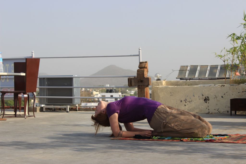 Delphine fait son Yoga sur le toit, profitant d’un cours particulier arrangé avec diligence par le gérant de l’hôtel la veille, pendant que je l’attends pour le petit déjeuner sur la terrasse.