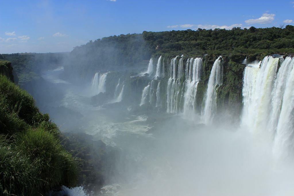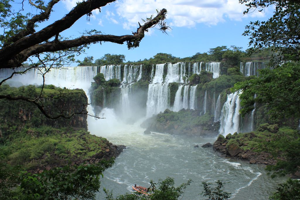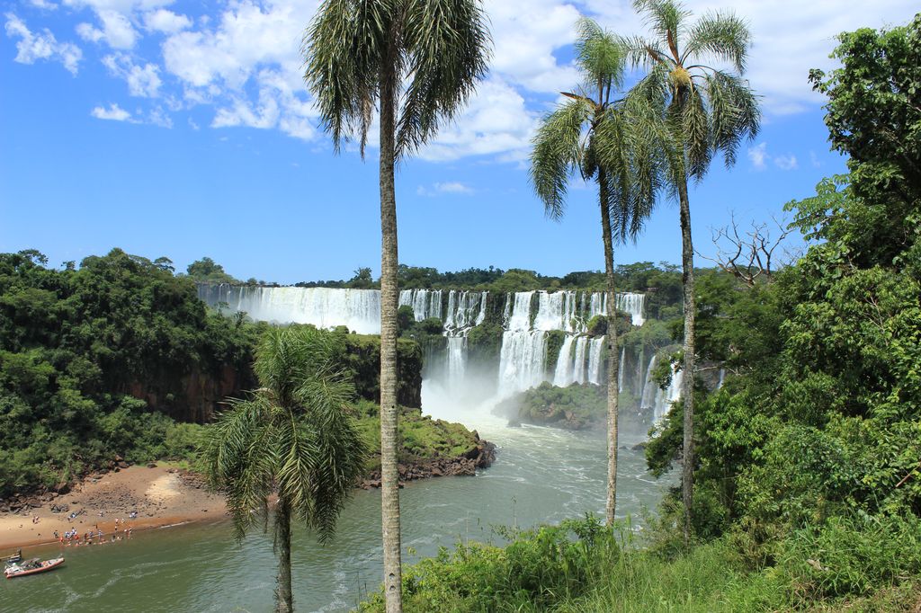 Notre première vision des chutes est superbe, on a tellement du mal à se les imaginer qu’une fois devant, on reste vraiment sans voix. Un paradoxe est qu’on espère de la fraîcheur, due à la proximité des chutes d’eau, mais il fait tellement chaud et lourd qu’on est en sueur avant d’avoir vu les chutes.